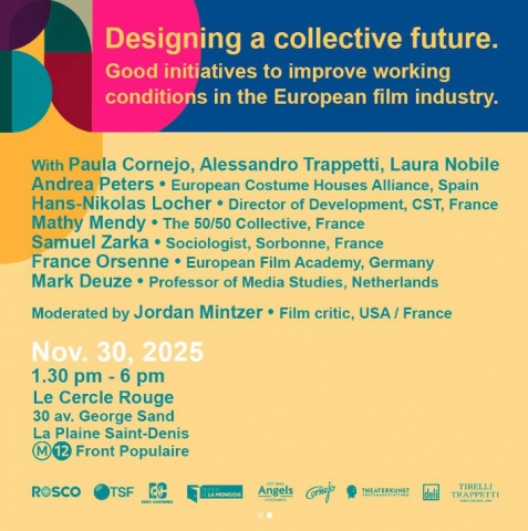 Un panel sur le thème « Good initiatives to improve working conditions in the European film industry » se tiendra dimanche 30/11/2025, de 13h30 à 18h, au Cercle Rouge, chez TSF 30 avenue George Sand, 93220 La Plaine Saint-Denis,