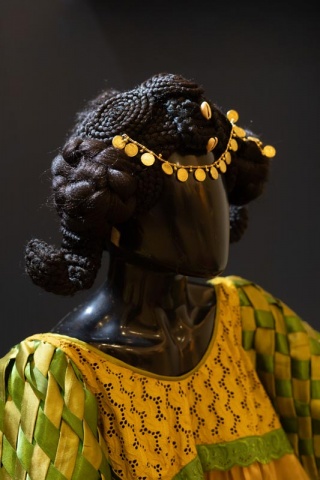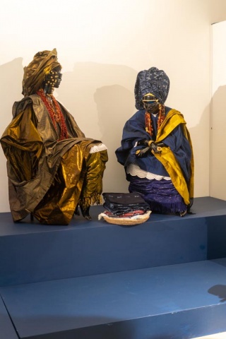 L’exposition s’organise comme un parcours symbolique à travers différents espaces évoquant la vie sociale et familiale : le Penc, lieu de rassemblement, la chambre et le trône, associés à l’autorité, ou encore l’atelier de couture, consacré à la transmission des techniques. Les visiteurs découvrent coiffures, bijoux, tissus, costumes et accessoires issus de nombreuses cultures du pays — wolof, sérère, peul, mandingue ou manjacks — révélant la diversité d’un patrimoine où le vêtement constitue un véritable langage social.