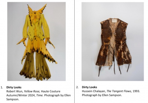Créant un dialogue qui unit les designers emblématiques et émergents, Dirty Looks étudie les façons riches et variées dont la mode a adopté son esthétique "sale". Des robes romantiques qui montrent leur propre destruction et des vêtements qui élèvent les taches en ornements artisanaux, jusqu'aux vêtements immergés dans des tourbières ou créés en transformant les déchets de fast fashion, Dirty Looks interroge sur où se trouve la beauté et ce que peut être la mode.